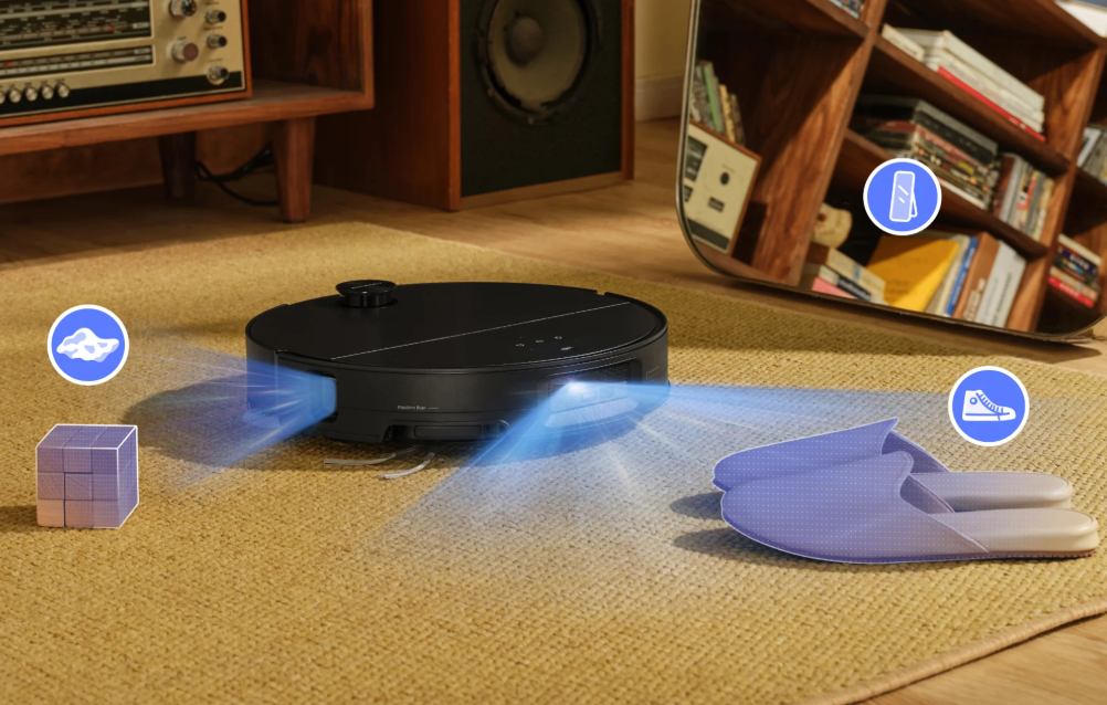 로보락 S9 MaxV Ultra의 가장 큰 특징은 Reactive AI 2.0 비전 시스템입니다. 이전 세대보다 3배 이상 향상된 물체 인식률을 자랑하며, 전선, 슬리퍼, 반려동물 배변패드까지 세밀하게 감지합니다. 야간에는 적외선 카메라로 자동 조명 보정이 이루어져 어두운 환경에서도 충돌 없이 청소가 가능합니다.