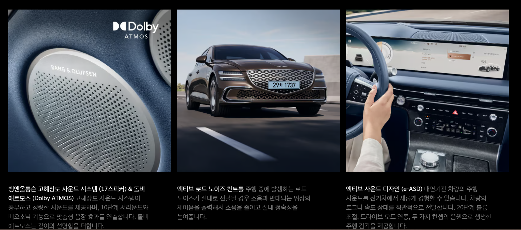 | 인포테인먼트 | 뱅앤올룹슨 사운드, Genesis Connected Services, 스트리밍 플러스 5년 무료 |
